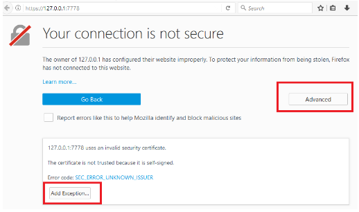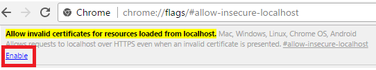 Click on “Enable” for Allow invalid certificates for resources loaded from localhost.