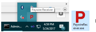6. Once completed, the Paywire Receiver should be running in the system tray on the bottom right corner of the task bar, as shown below.