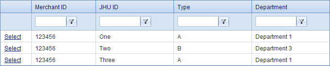 The first option is for Merchant type. The Merchant Type can either be type A or type B, which determines the SAP requirements for the merchant. See SAP requirements below for more information. On this page the Department and JHU ID can also be assigned and changed for a Merchant ID. The OSBP client ID and OSBP Merchant Key are used for the Off Site Buy Page. A new OSBP Key can be generated by Clicking the "Generate New" button. The Merchant ID itself is displayed but cannot be changed. This page is also where the Merchant Location, Mailing, and Contact information is entered.