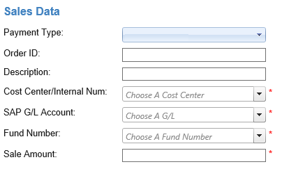 Merchant Type A describes a merchant who can process payments of typesCredit Card Sale, Credit Card Force, E-Check, and Recurring Credit Card Billing, but is allowed to enter SAP information for only one SAP revenue account in any payment type. Because Merchant Type A can enter SAP revenue information, each payment type contains the additional following fields: Cost Center / Internal Num, SAP G/L Account, and Fund Number.